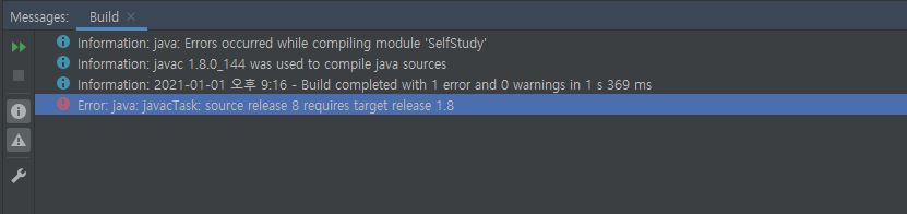 Q : Error:java: javacTask: source release 8 requires target release 1.8 에러 발생