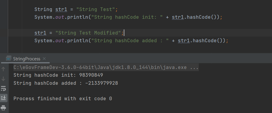 - String 객체 값이 변경 시 새로운 메모리 주소값이 생성됨