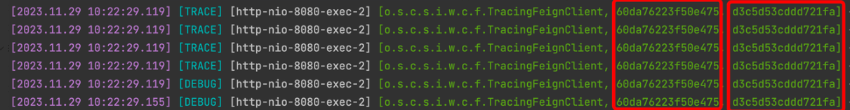 하지만 이 방법은 실제 현재 프로젝트에 로그로는 출력 가능하나 다른 서비스에 traceId, spanId 전달 불가