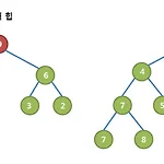 힙이란 최대값 및 최소값을 찾아내는 연산을 하기 위한 완전이진트리를 기본으로 한 자료구조- 완전이진트리- 부모노드의 키 값이 자식 노드의 키 값보다 크다(최대힙) or 작다(최소힙) 노드 삽입- 우선, 삽입하려는 노드를 완전이진트리의 맨 마지막 자리에 추가한 뒤,부모노드와 크기를 비교해가면서 대소관계아 따라 노드를 교환하여 힙으로 다시 만드는 과정을 거친다.노드 삭제- 힙에서 노드의 삭제는 루트노드를 삭제하면서 반환한다는 의미이다. 최대값이나 최소값을 찾아내는 연산을 하기 위한 트리이기 때문이다.노드에 노드가 하나도 남지 않을때까지 삭제연산을 반복해 반환된 노드들을 순서대로 늘어놓으면 오름차순 혹은 내리참순으로 정렬된 배열이 된다. 이를 힙정렬이라고한다. 루트노드와 맨마지막 노드의 자리를 바꾼다. 이렇게..