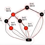 레드블랙트리(Red-Black Tree)- 이진탐색트리의 일종- 균형잡힌 트리 : 높이가 O(logn)- SEARCH,INSERT,DELETE를 수정함으로써 균형을 잡히도록 만듬 -각 노드는 하나의키(key),왼쪽자식(left),오른쪽자식(right),그리고 부모노드(p)의 주소를 저장- 자식노드가 존재하지 않을 경우 NIL 노드라고 부르는 특수한 노드가 있다고 가정- 따라서 모든 리프노드는 NIL노드- 루트의 부모도 NIL노드라고 가정- 노드들은 내부노드와 NIL노드로 분류 다음 조건을 만족하는 이진탐색트리 :1. 각 노드는 red 혹은 black이고,2. 루트노드는 black이고 3. 모든 리프노드(즉 NIL노드)는 black이다.4. red노드의 자식노드들은 전부 black이고(즉, red노듣 연속..